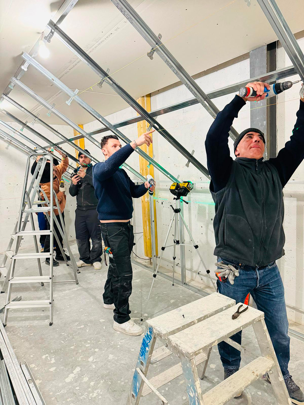À travers des formations pratiques et adaptées aux réalités du terrain, nous transmettons notre savoir-faire dans différents domaines : plaquisterie, peinture, menuiserie bois et PVC, agencement intérieur, électricité et techniques du bâtiment.