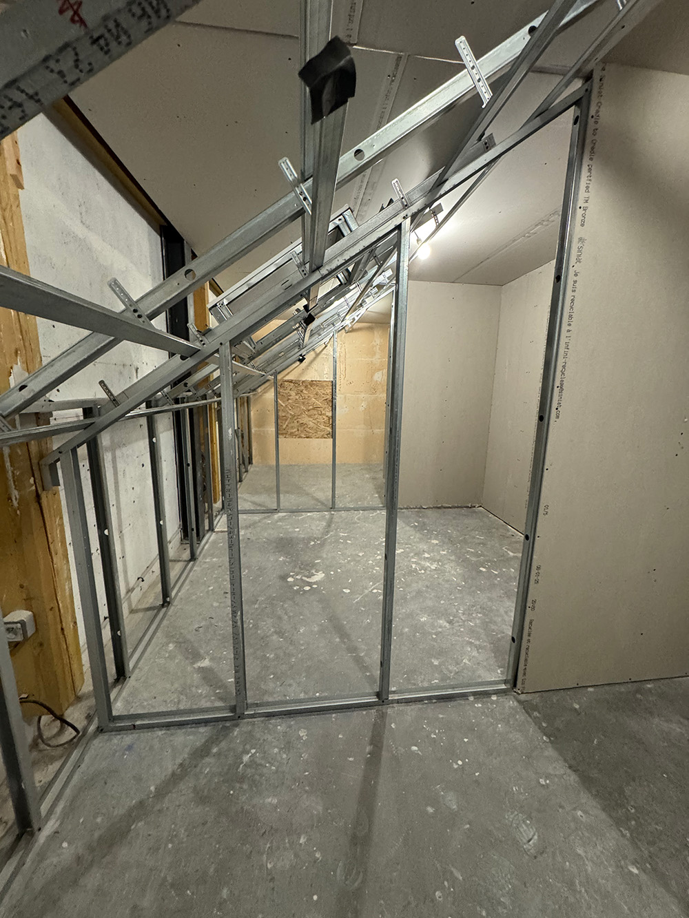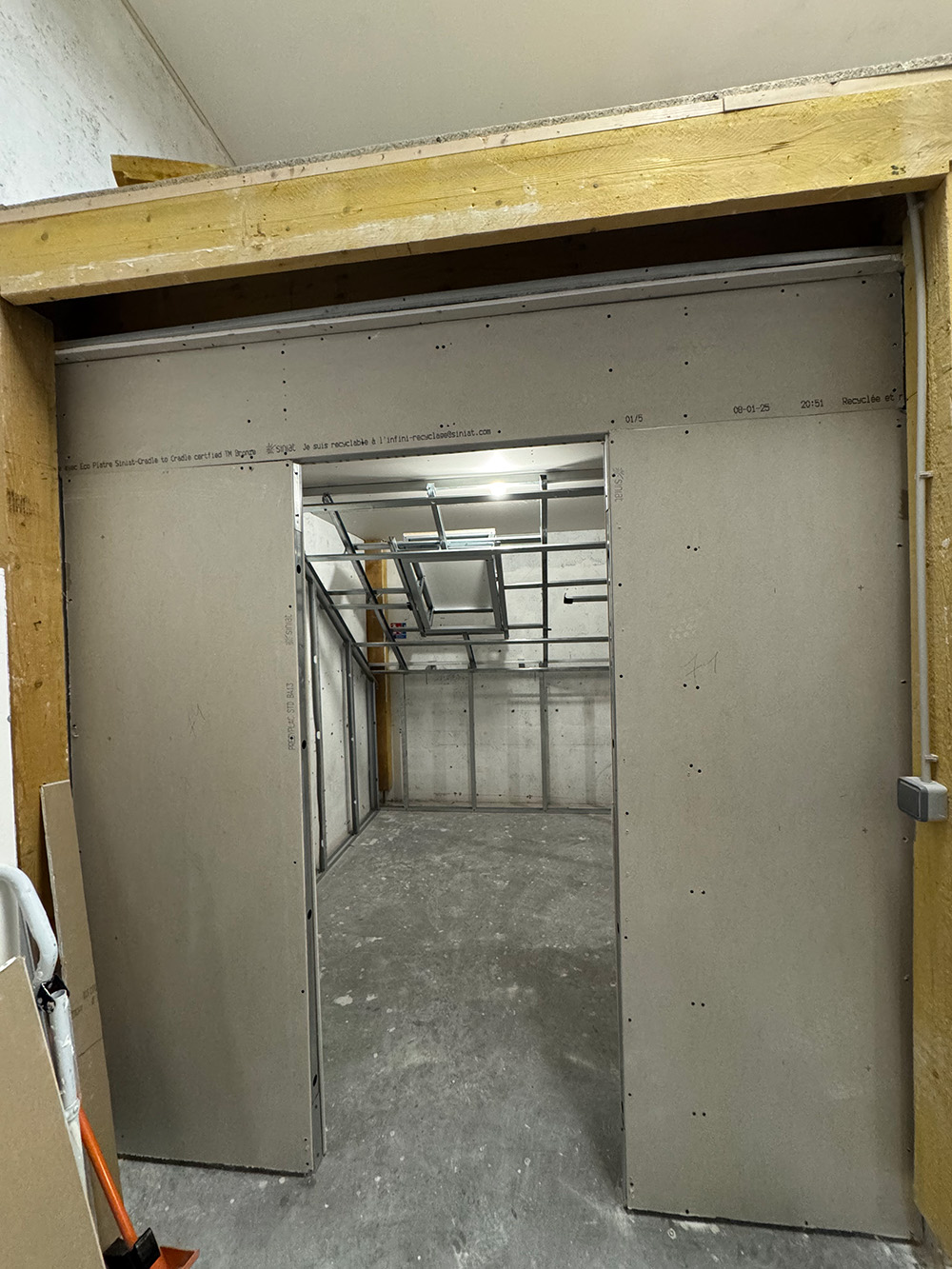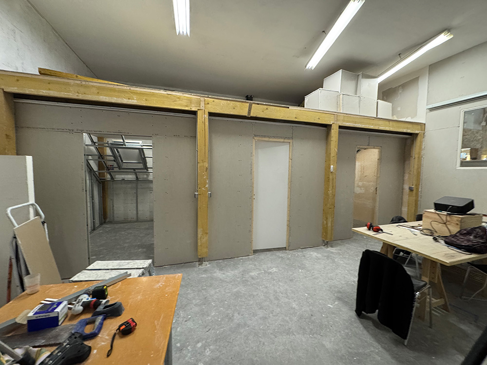 Atelier pratique : maquettes grandeur réelle, postes de travail équipés (ossatures métalliques, plaques de plâtre, isolants…).